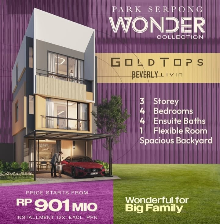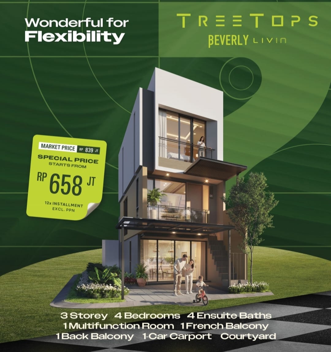 Rumah 3 lantai multifungsi dengan 4 kamar tidur & 4 kamar mandi dalam, berlokasi di kawasan premium, elite & Prestisius Central Lippo